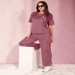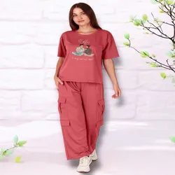 Tan Tencel Nightwear Set Oversized T-Shirt And Cargo Pant Set With Pockets For Women And Girls