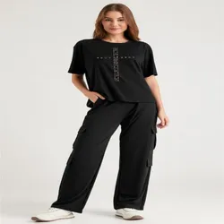 Black Tencel Nightwear Set Oversized T-Shirt And Cargo Pant Set With Pockets For Women And Girls